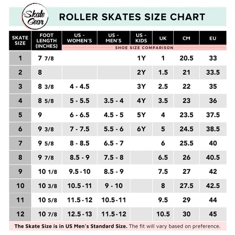 Durable and reliable construction ensures a safe and efficient skating experience. The 54x32mm, 85A PVC wheels are the ideal balance between soft and hard, giving you great grip, speed and control. These wheels absorb the shock without compromising lightning speed. While the wide-suspension trucks provide stability and balance. Get better traction, control and maneuverability with the sleek Skate Gear Roller Skates.