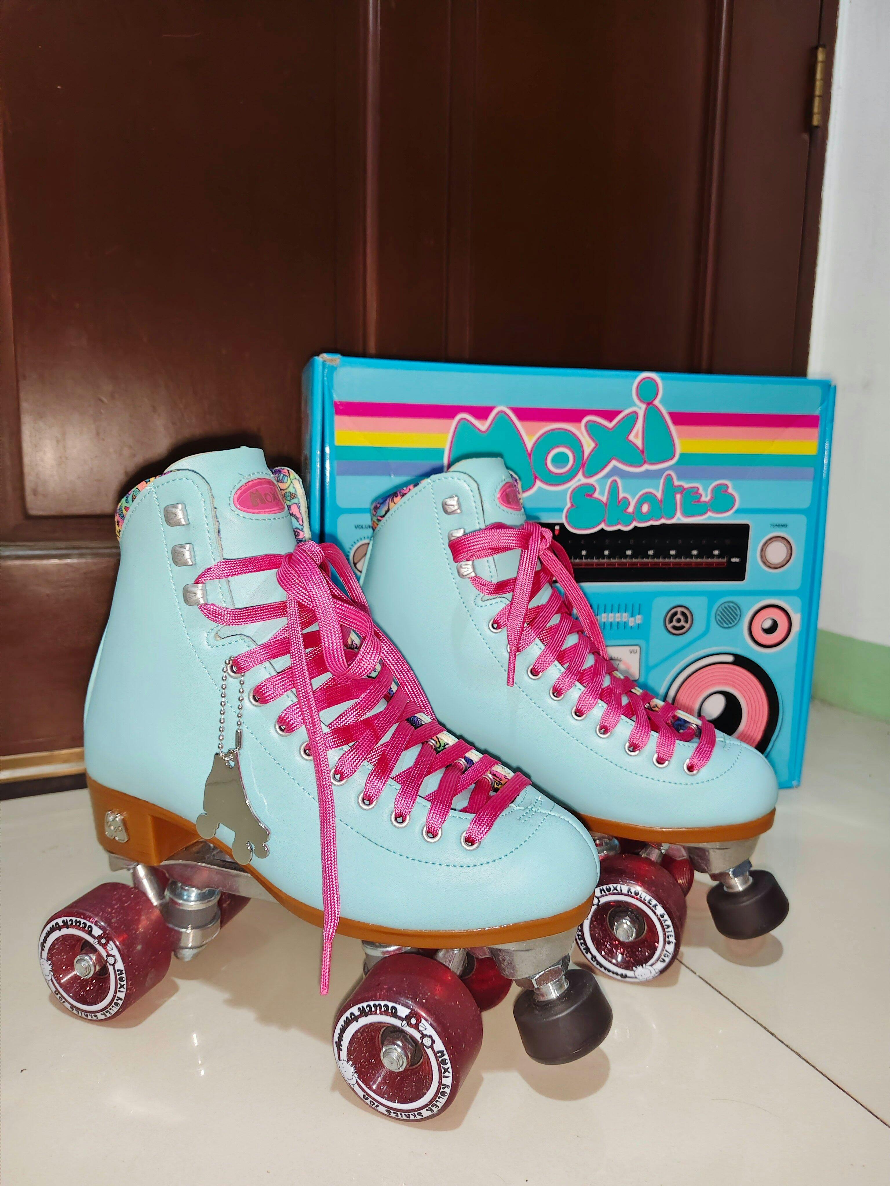 With the Beach Bunny line, classic Moxi fashion has never been more affordable! The Beach Bunny features a traditional high top boot with thoughtful touches including drum-dyed vinyl uppers for more authentic color saturation and additional ankle padding that provides comfort and security whether you’re cruising down the boulevard or dipping your toes into the skate park scene. Bright laces that shine in the sun add to the fashion-forward design of the Beach Bunny, and the moisture-wicking Dri-Lex™ liner is printed with a custom pattern that was designed from scratch by Moxi team members for a skate that is 100% Moxi, inside and out. Complete with glittery high rebound urethane outdoor wheels and a pair of matching toe caps, the Beach Bunny is ready to accompany you on your next adventure!