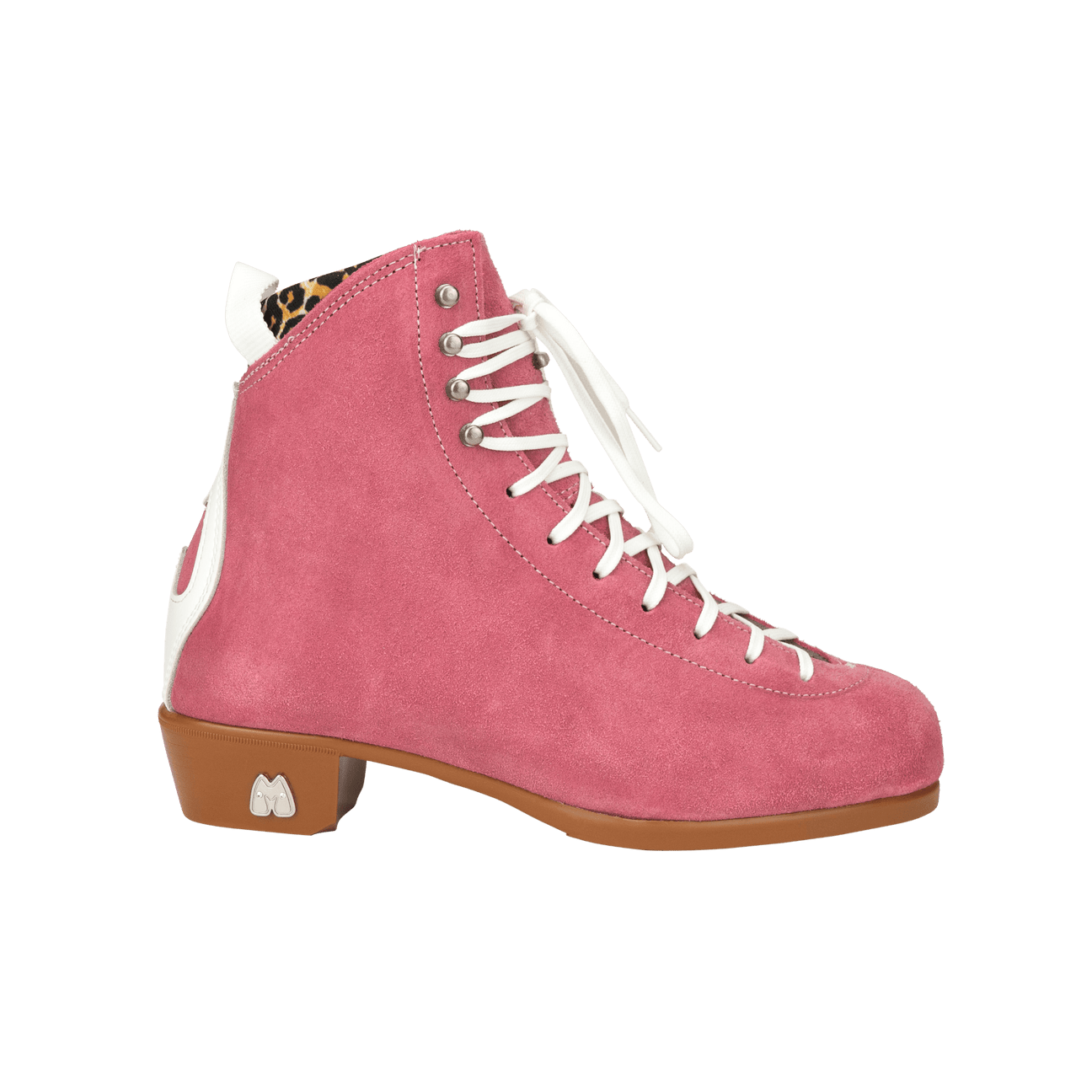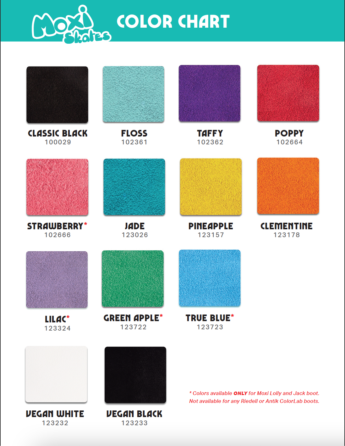 The Moxi Jack combines classic roller skate design with modern materials and features to create a high-performance boot designed to withstand the stresses of ramp, park, and aggressive street skating. The rich suede upper is backed throughout for additional support in all directions. Ankle padding and a soft, genuine Shearling tongue lining make the Jack as comfortable as it is strong, and a lace bar stabilizer helps prevent unwanted tongue rotation while skating. Thoughtful touches such as solid metal hooks, wax-infused laces, and a unique backstay design featuring the signature Moxi “M” round out the Jack and ensure that no detail is overlooked. Stiff and supportive, approximately 10 hours of break-in time is recommended to form the Jack to the shape and contours of your movements.