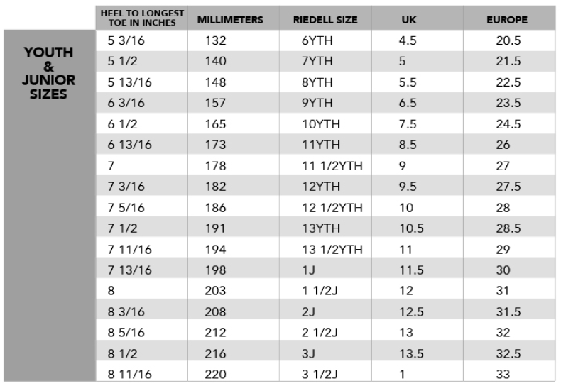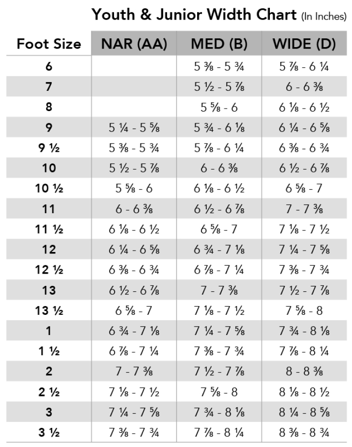 - White: Youth 10–Junior 3 Full Only; Medium Width