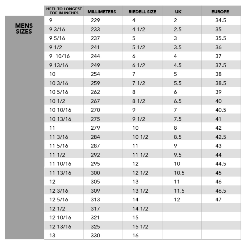 - Black: 4–13 Full and Half sizes; *Narrow, *Medium, *Wide widths