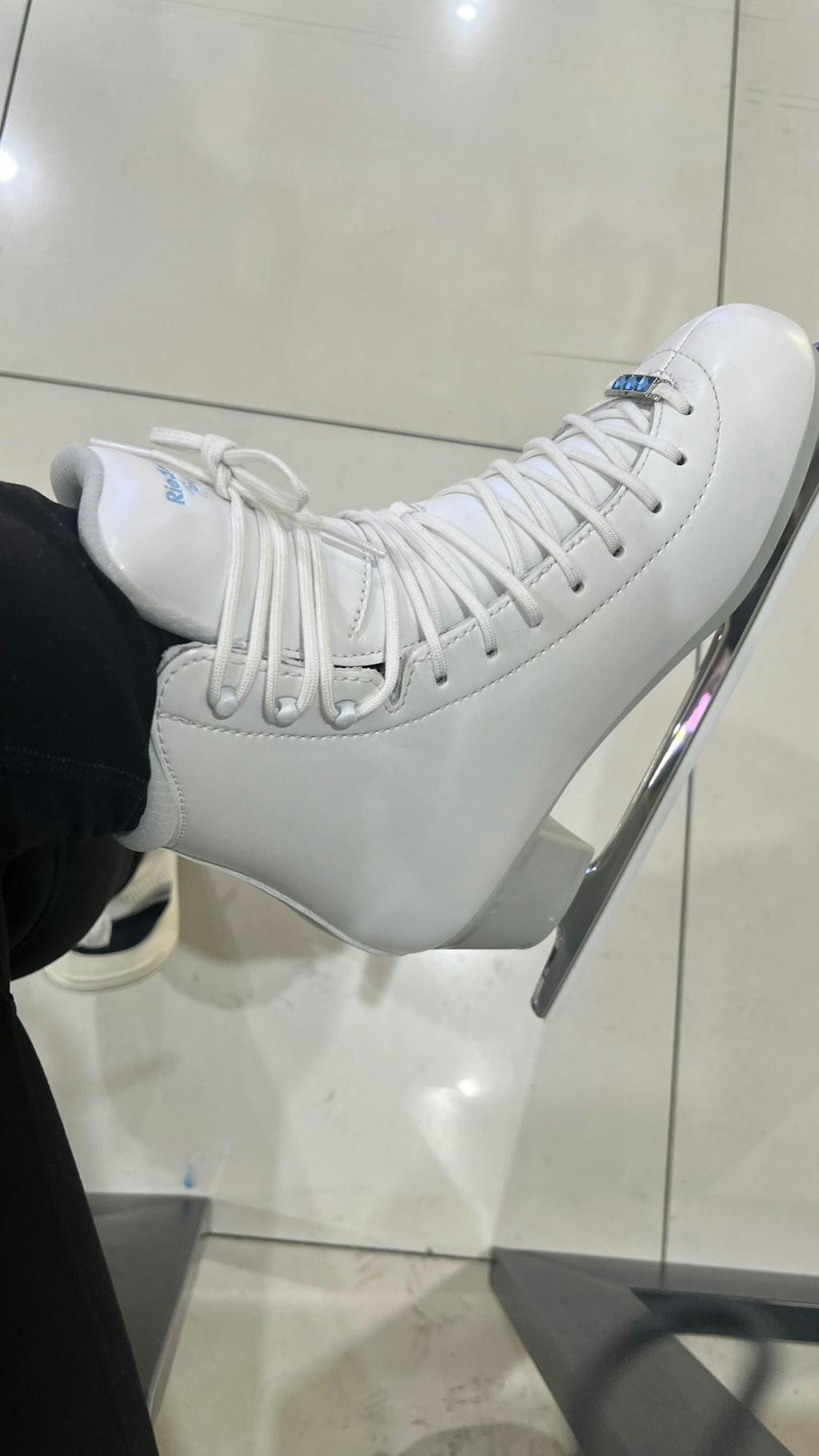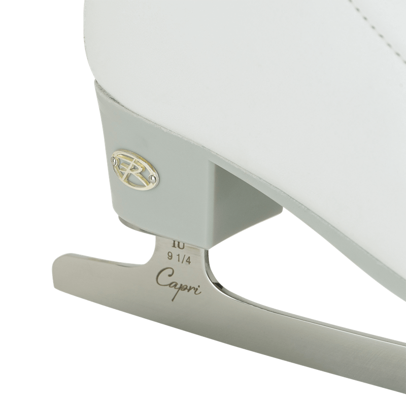 This skate set also offers a modern ergonomic toe fit for out-of-the-box comfort. The plush hand rolled collar provides relief to the Achilles tendon and a flex notch design facilitates proper knee and ankle bend. Beyond the technical features, each skate is adorned with faux crystals in the backstay and a decorative gem lace bar for added sparkle on the ice.